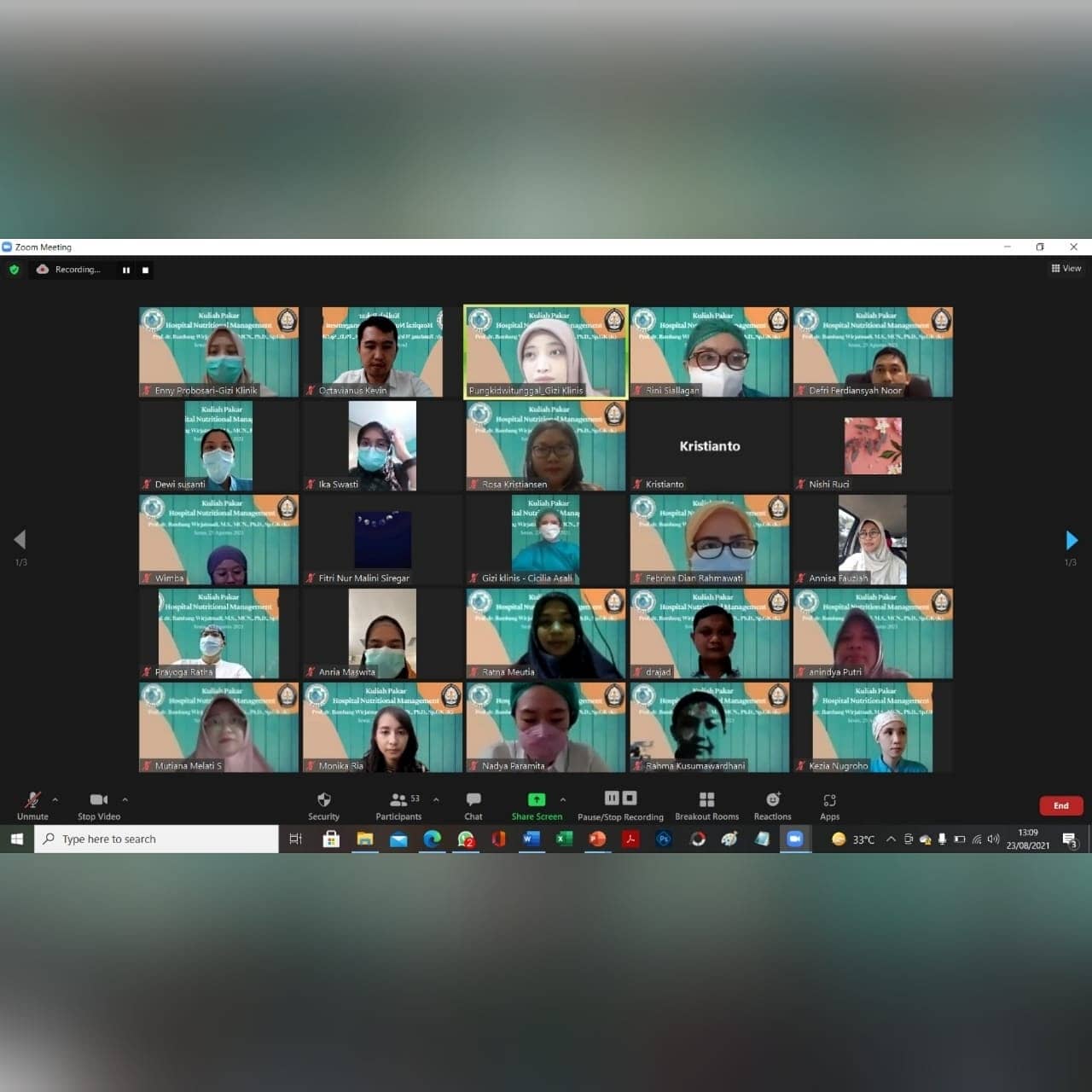 Kuliah pakar Prodi Gizi Klinis FK UNDIP tentang Hospital Nutritional Management yang diikuti oleh seluruh PPDS Gizi Klinis FK UNDIP dan juga alumnus.